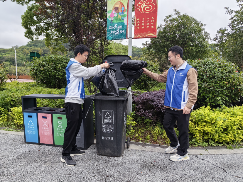 活动现场,公司青年员工沿园区环山步道有序健步前行。行进途中,大家化身环保志愿者,手持垃圾夹、环保垃圾袋,沿途认真捡拾清理路面及绿化带杂物垃圾,身体力行维护园区生态环境,用实际行动践行绿色环保理念。同时,青年志愿者主动对接飞凤山公园志愿服务中心,为园区一线环卫工人送上矿泉水、菊花茶等慰问饮品,向默默坚守岗位的环卫工作者致以诚挚敬意与暖心关怀。