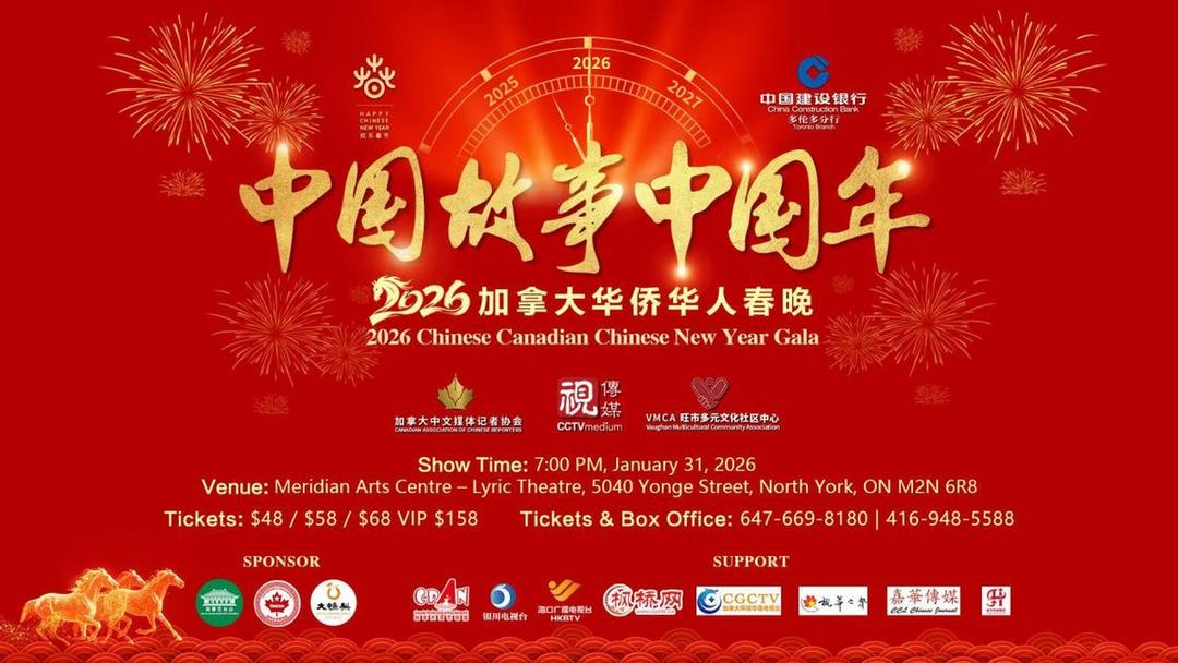 同日晚间,2026“中国故事·中国年”加拿大华侨华人春晚将在Meridian Arts Centre(Lyric Theatre)精彩上演。本届春晚由加拿大中文媒体记者协会、加拿大视传媒与旺市多元文化社区中心联合主办,已连续举办八届,成为加拿大华人社区具有代表性的文化品牌。晚会将以原创与首演为亮点,邀请中加艺术家同台献艺,并通过加拿大与中国多家电视及网络平台同步播出。