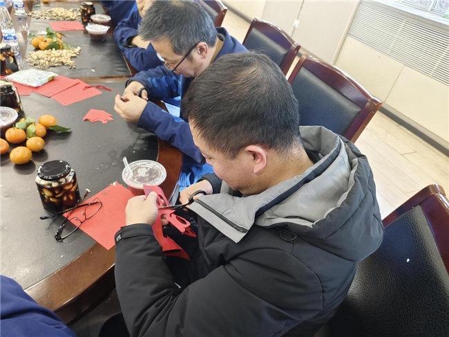 剪纸传福,红纸翻飞,指尖生花。从对折、勾勒到裁剪,职工们凝神专注,或剪寓意吉祥的“福”字,或刻栩栩如生的花鸟纹样,一张张色彩鲜艳、造型精美的剪纸作品相继诞生。大家互相展示、交流心得,在传统手工艺的创作中感受非遗文化的魅力,让浓浓的年味在指尖流转。