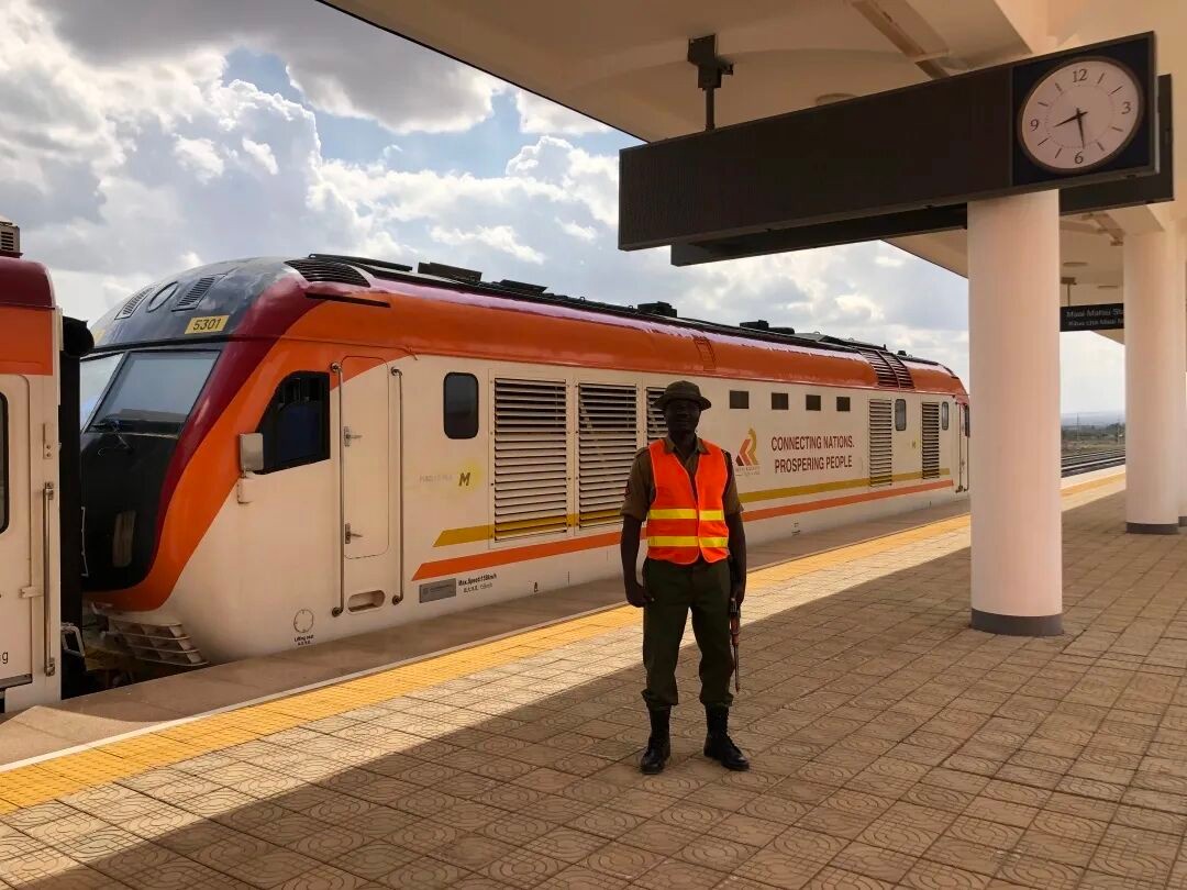 伴随着轰鸣的汽笛声,火车缓缓地驶停在麦玛尤站,正在车站执行护卫任务的警察小队长佛朗西斯露出了激动的心情,因为刚刚将视察现场的中方企业高管顺利护送离开卖麦尤车站,为了今天的护卫任务,他早早的就起了床,换上了他最新的警服,把皮靴擦了两遍。佛朗西斯告诉我,他在SGR工作了四年,铁路的竣工和火车的到来,大大改善了他们的生活,很多贫民找到了工作,解决了温饱,偷盗案件明显减少,他衷心地感谢中国人的辛勤付出。