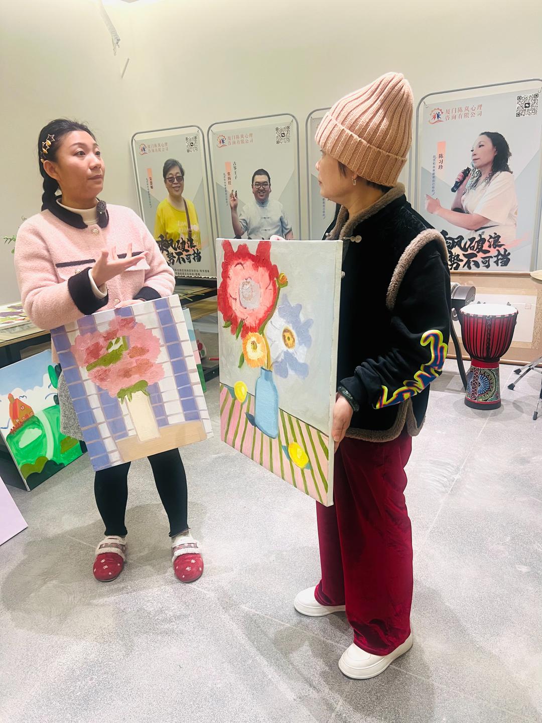 本次活动的发起,离不开一位满怀社会情怀的艺术家的倾力推动。作为职业画家,她创作了《瓶中的世界》系列作品,开创心流绘画形式,引导自闭症儿童拿起画笔,描绘自己眼中的世界;同时以艺术为媒,陪伴更多人在笔墨色彩中舒缓心境、找寻内心的光亮,让绘画成为温暖心灵的美好载体。
