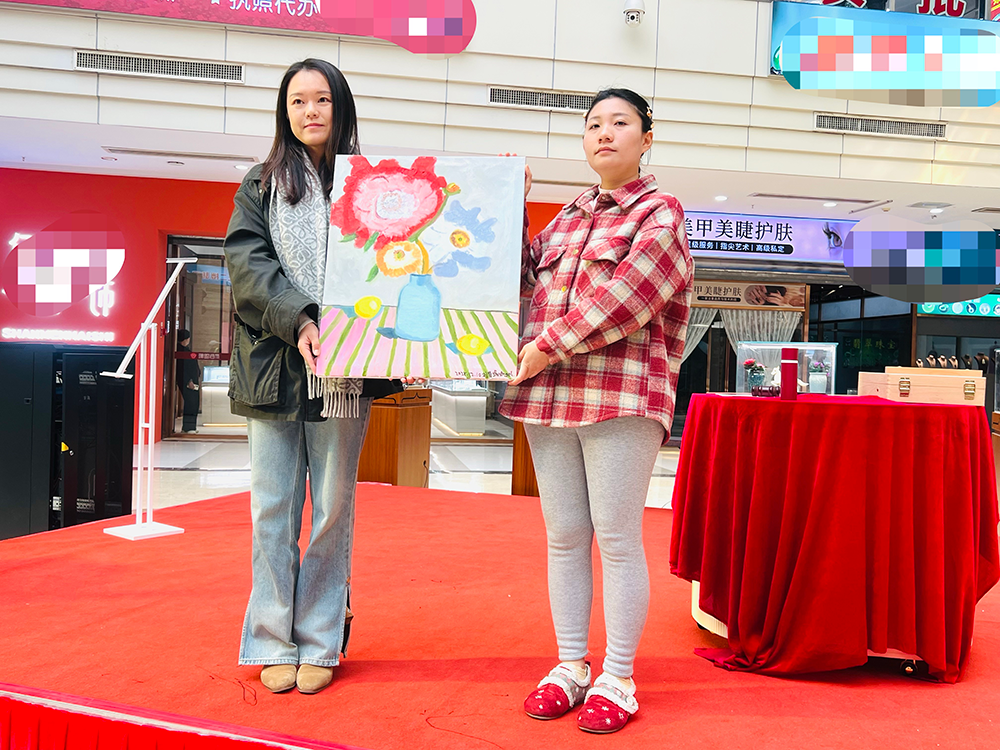 在随后的竞拍环节中,刘梦缘的两幅作品备受青睐,吸引多位嘉宾踊跃举牌,现场气氛温暖而热烈,最终均顺利落槌。其中画作《瓶中花》由爱心人士王嘉嵘女士竞得。拍卖结束后,王嘉嵘女士分享感言:“第一次看到梦缘的《瓶中花》,就被画面中温暖鲜活的色彩所打动。这不仅是一幅画,更承载着创作者独特的感知与温柔的心意。能够收藏这件作品,也是收藏一份跨越海峡的艺术情谊,希望用这样的方式支持更多像梦缘一样的青年创作者,让两岸艺术在共鸣中走得更近。”