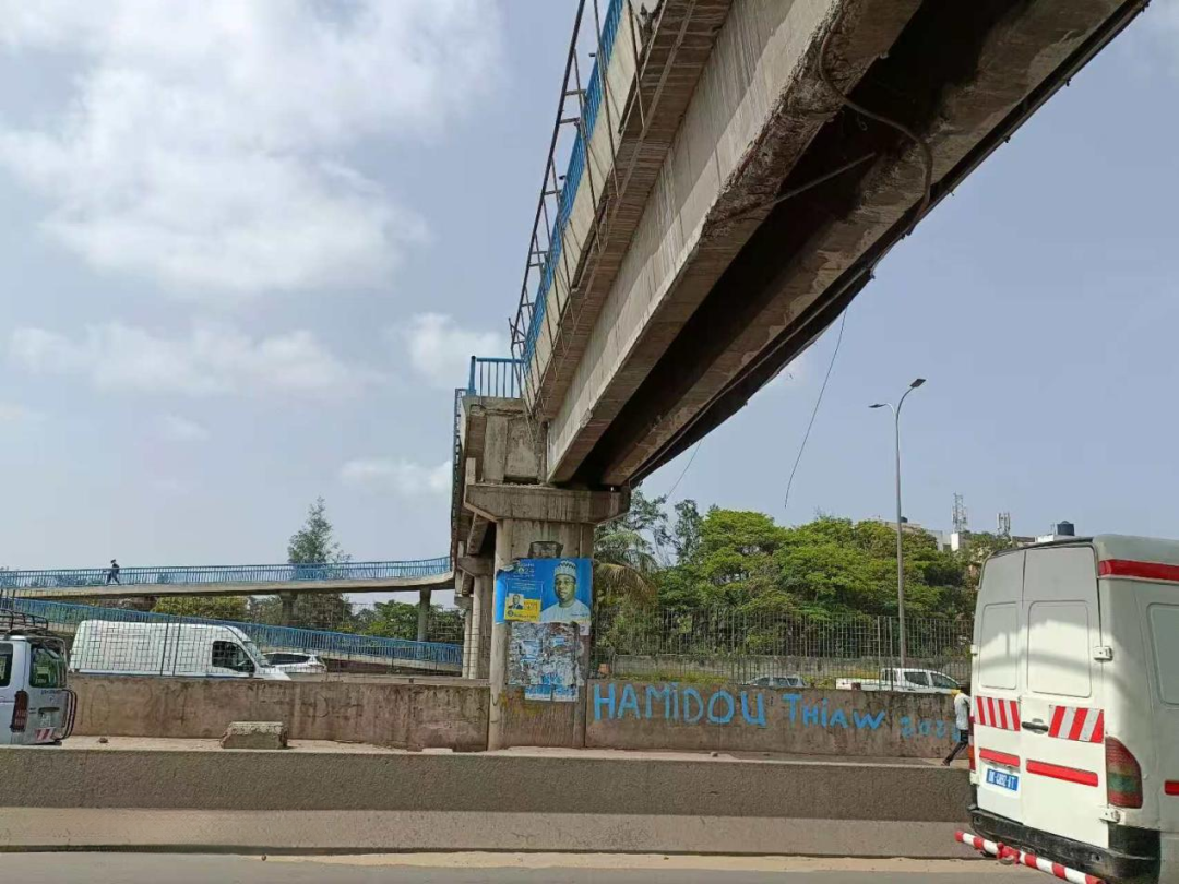 共工新闻社达喀尔12月11日电(通讯员:吕承浩、熊小义、马一方)在塞内加尔首都达喀尔市,有一座连接交通枢纽区与人口密集区的人行天桥,横跨N1国道和A1高速公路,是通向城市各处的“大动脉”,每天车水马龙,川流不息。